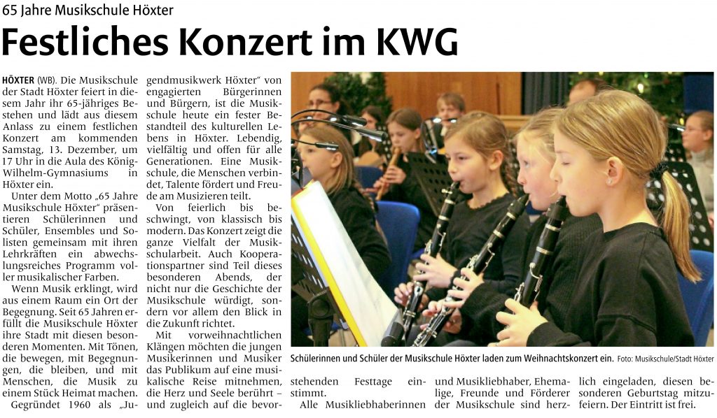 Jubiläumskonzert: 65 Jahre Musikschule Höxter