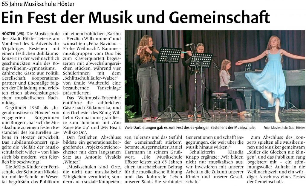 Wenn Musik erklingt, wird aus einem Raum ein Ort der Begegnung. Seit 65 Jahren erfüllt die Musikschule Höxter ihre Stadt mit diesen besonderen Momenten. Mit Tönen, die bewegen, mit Begegnungen, die bleiben, und mit Menschen, die Musik zu einem Stück Heimat machen.