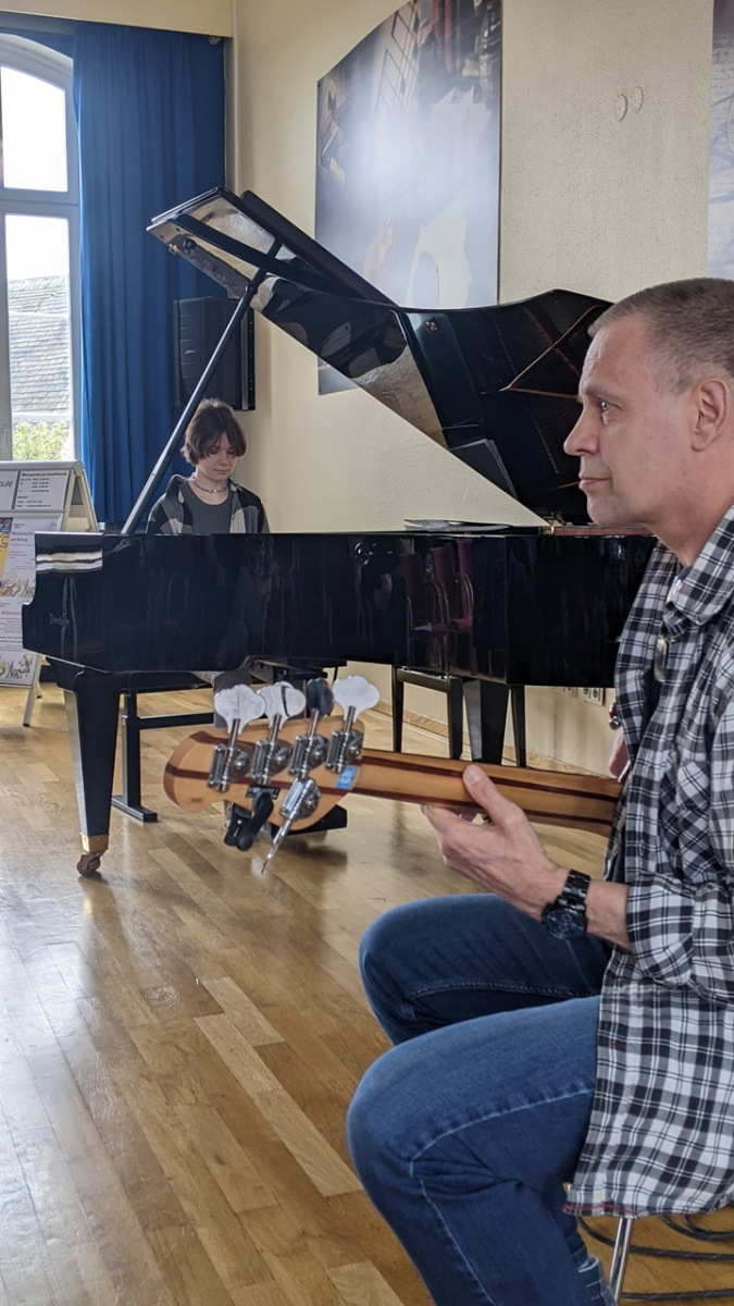 Die frischgebackenen Preisträger des Regionalwettbewerbes „Jugend musiziert“ Josefine Rabcenko und Philipp Bollack, nutzten die Gelegenheit, sich vor dem heimischen Publikum zu präsentieren. Mit einer kleinen süßen Überraschung gratulierte die Musikschulleiterin, Klaudia Knapp zu dem großen Erfolg.