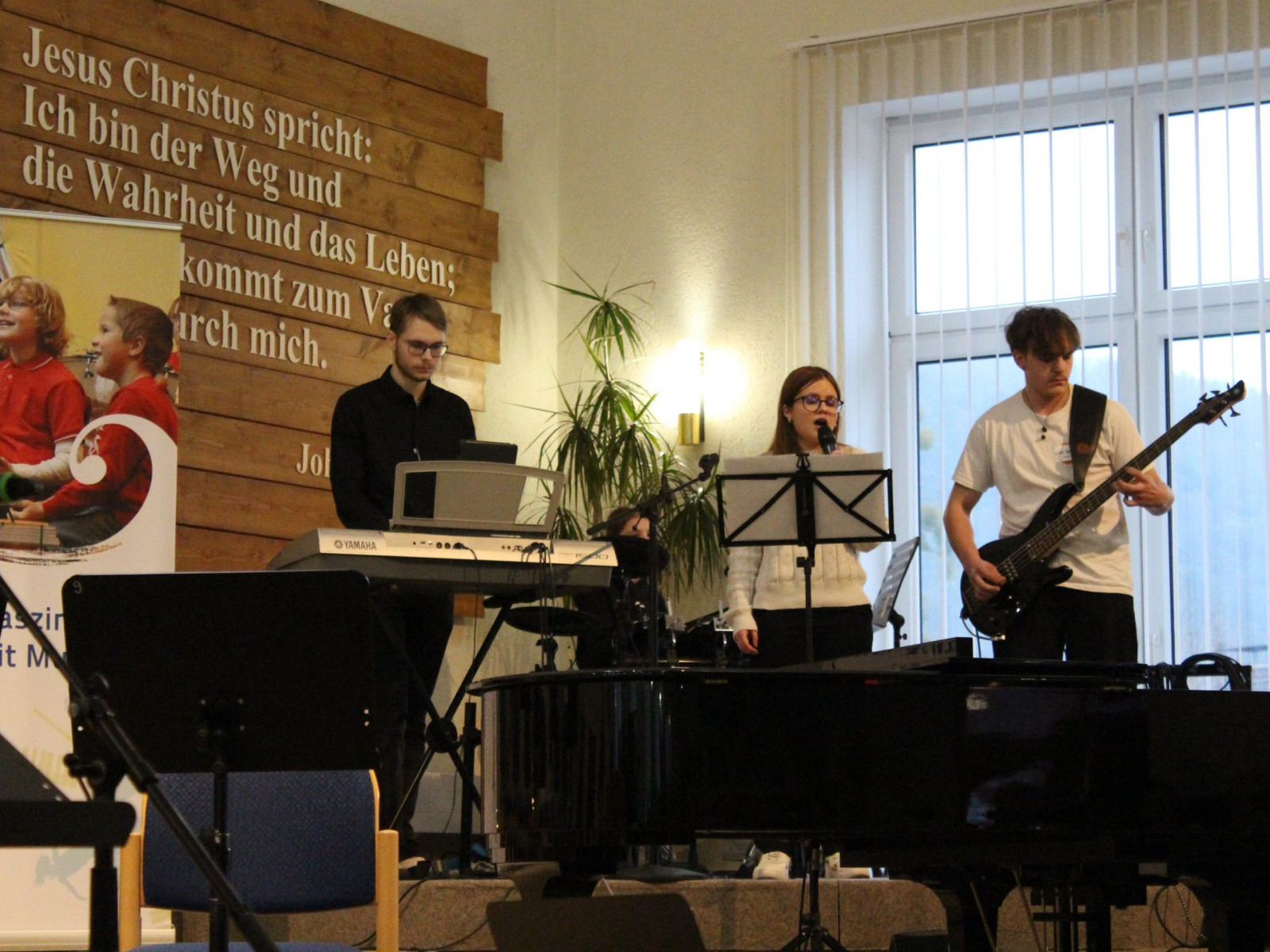 Die frischgebackenen Preisträger des Regionalwettbewerbes „Jugend musiziert“ Josefine Rabcenko und Philipp Bollack, nutzten die Gelegenheit, sich vor dem heimischen Publikum zu präsentieren. Mit einer kleinen süßen Überraschung gratulierte die Musikschulleiterin, Klaudia Knapp zu dem großen Erfolg.