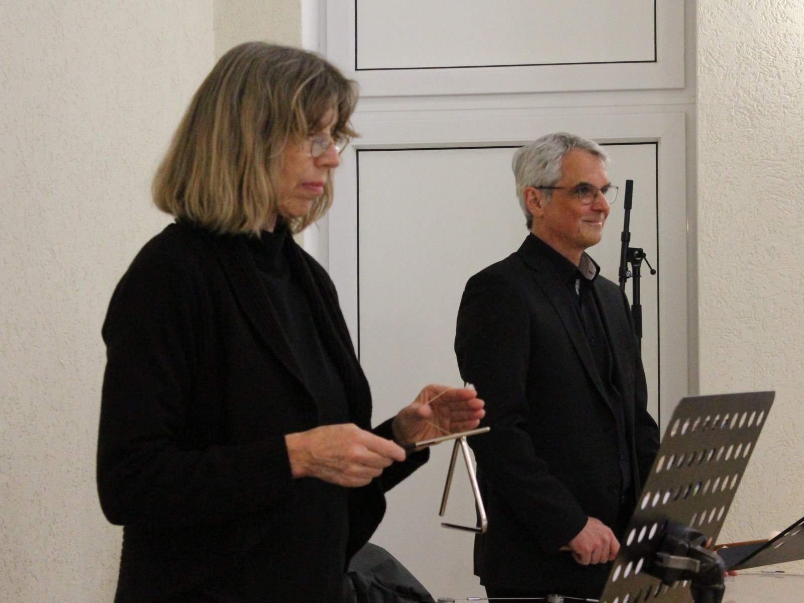 Die frischgebackenen Preisträger des Regionalwettbewerbes „Jugend musiziert“ Josefine Rabcenko und Philipp Bollack, nutzten die Gelegenheit, sich vor dem heimischen Publikum zu präsentieren. Mit einer kleinen süßen Überraschung gratulierte die Musikschulleiterin, Klaudia Knapp zu dem großen Erfolg.