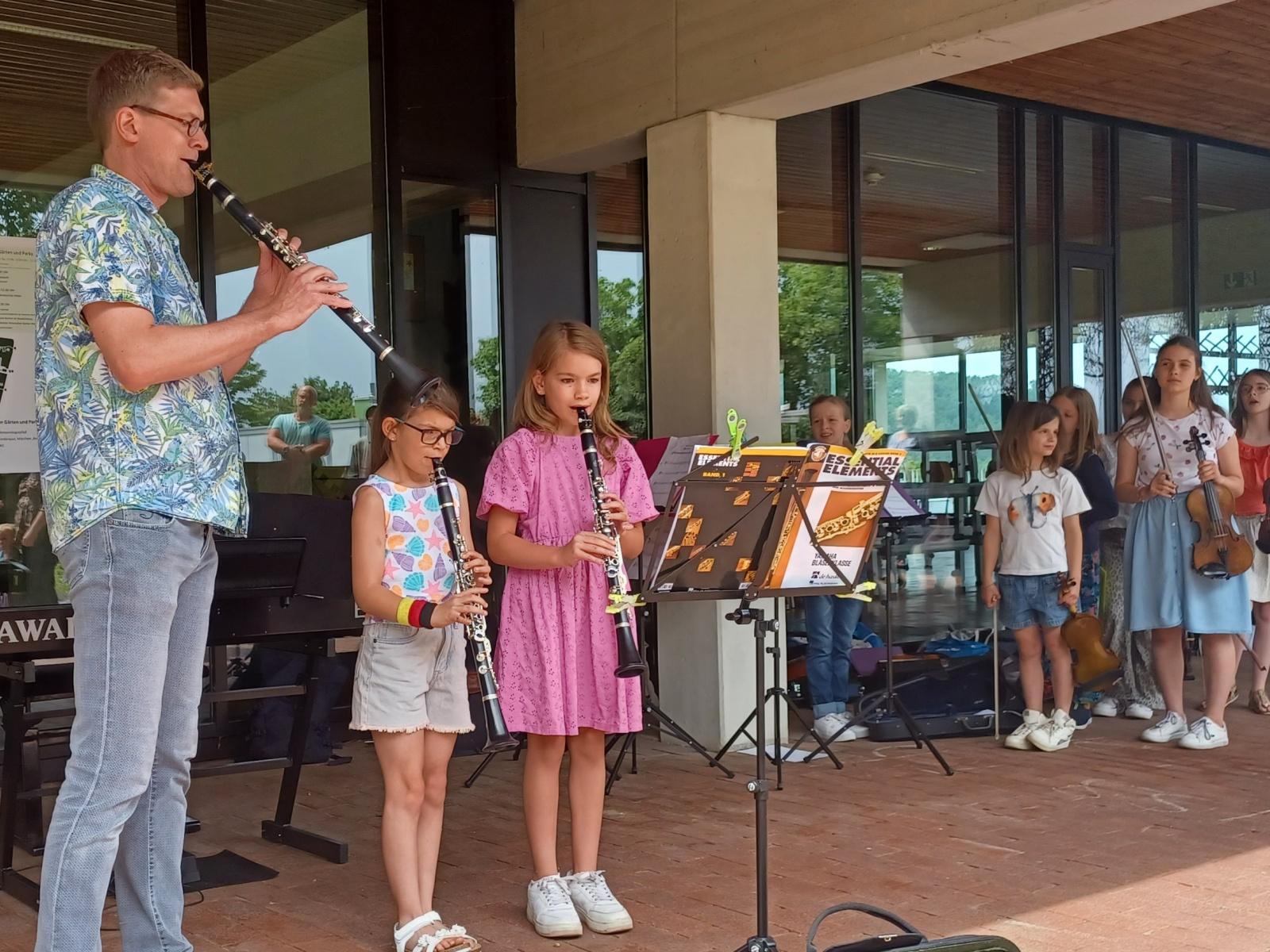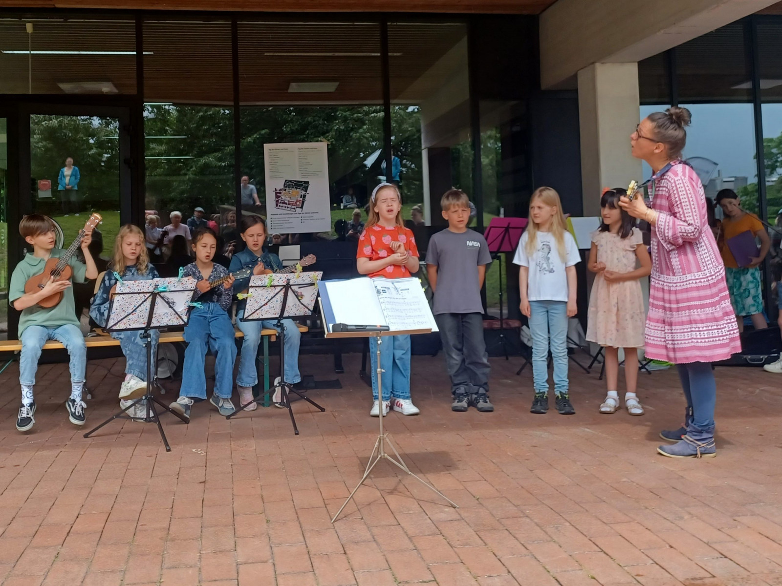 Mit dabei waren die JeKits 2 – Kinder und die Ukulelen-AG der Schule am Nicolaitor mit ihrer Lehrerin Kristina Mengersen, das Streichensemble SteichHölzer unter der Leitung von Klaudia Knapp, die Querflötenschülerinnen von Andrea Broer und die Klarinettenschülerinnen von Florian Stubenvoll. Die Korrepetition übernahm Fiona Ott.