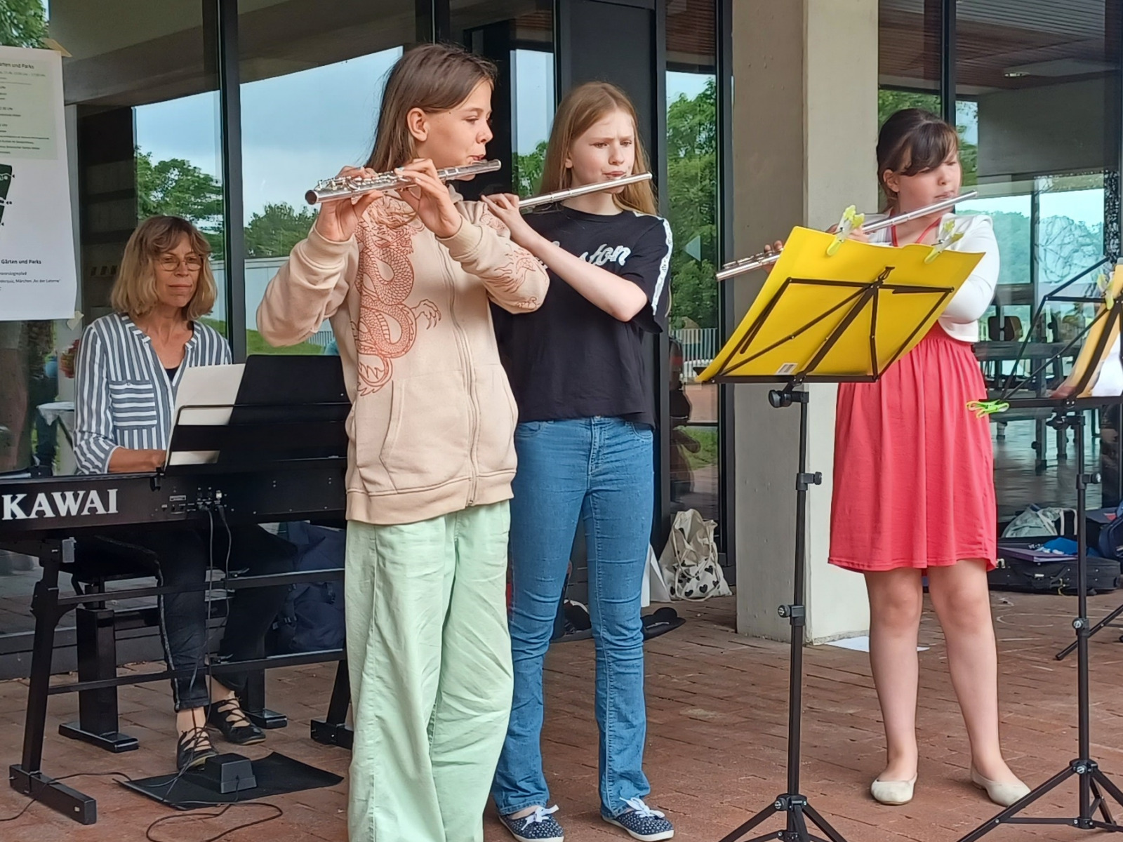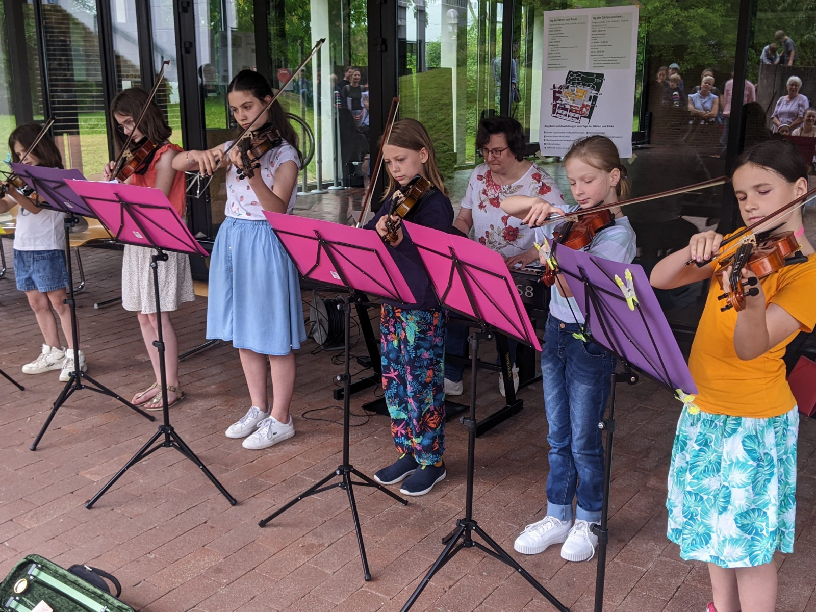 Zum Tag der Gärten und Parks OWL überbrachten Schülerinnen und Schüler der Musikschule Höxter sommerliche Grüße und musizierten auf dem Campus der TH OWL.
