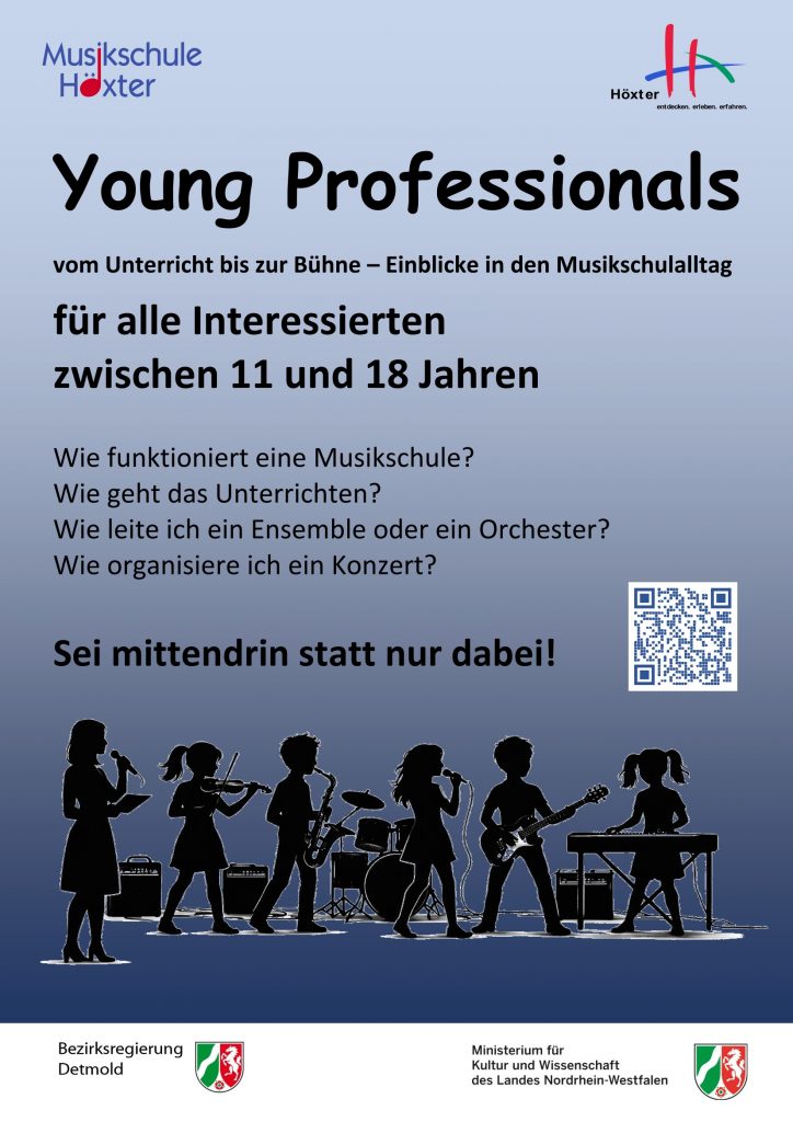 Die Musikschule Höxter lädt alle interessierten Jugendlichen zu einem besonderen Projekt ein. Bei den „Young Professionals“ kann hinter die Kulissen eines Musikschulbetriebes geschaut werden. Es geht um den regelmäßigen Unterricht und die Ensembleproben, es geht um Projekte, Konzerte und Veranstaltungen. Alles, was Du schon immer über die Musikschule und die Arbeit einer Musikschullehrkraft wissen wolltest, kann endlich geklärt werden.